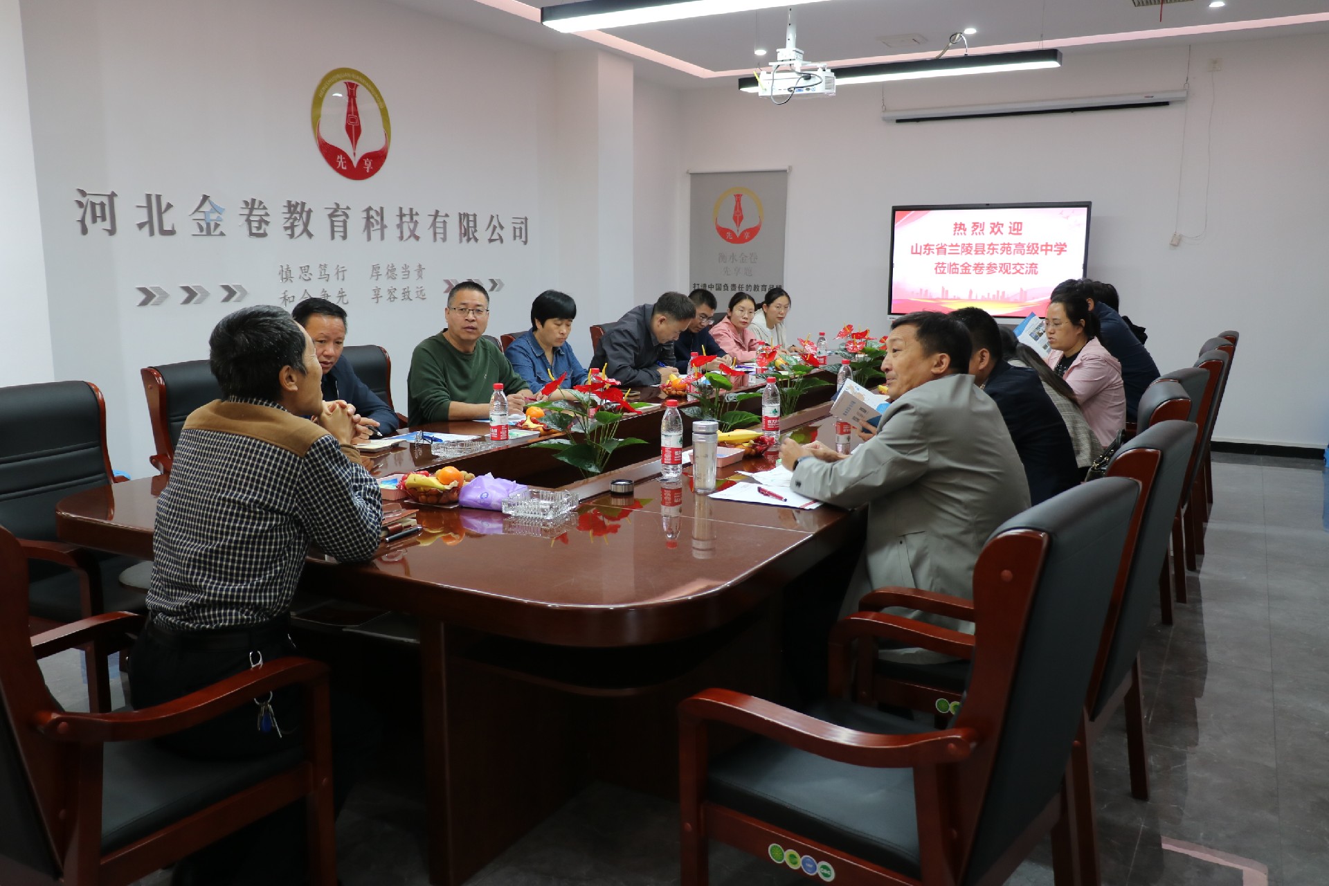 熱(rè)烈歡迎山(shān)東省蘭陵縣東苑**中學考察團走進金卷參觀交流
